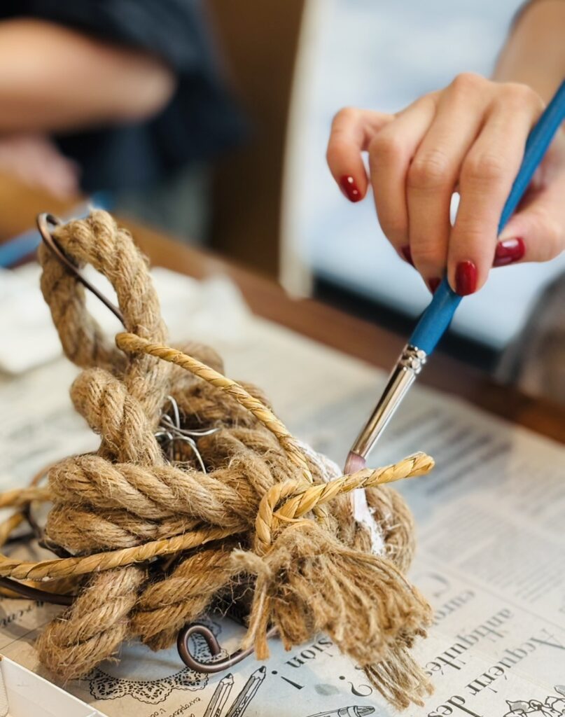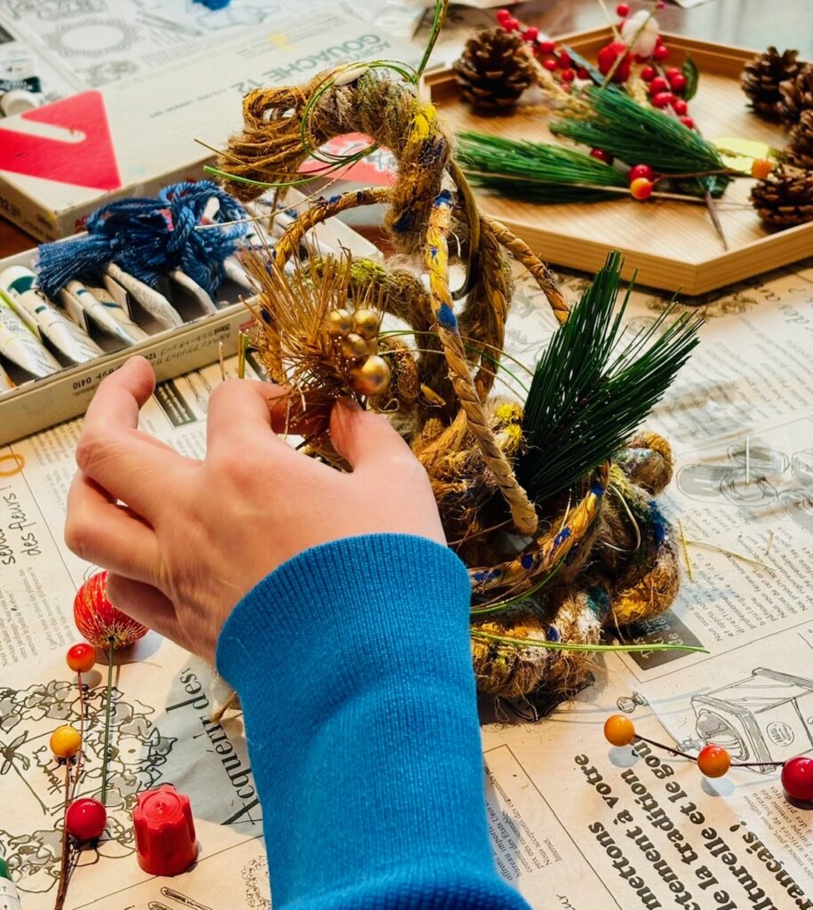 一本の縄()から生まれる様々な動きを発見し、空間を捉えながら造形します。生け花の要素を楽しみながら斬新な正月飾りをつくりましょう。